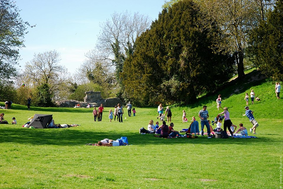 Naivie. Brīvdiena taču. visi iedzīvotāji ir pils parkā. Ko tad citu darīt, jā ne sēdēt ārā?