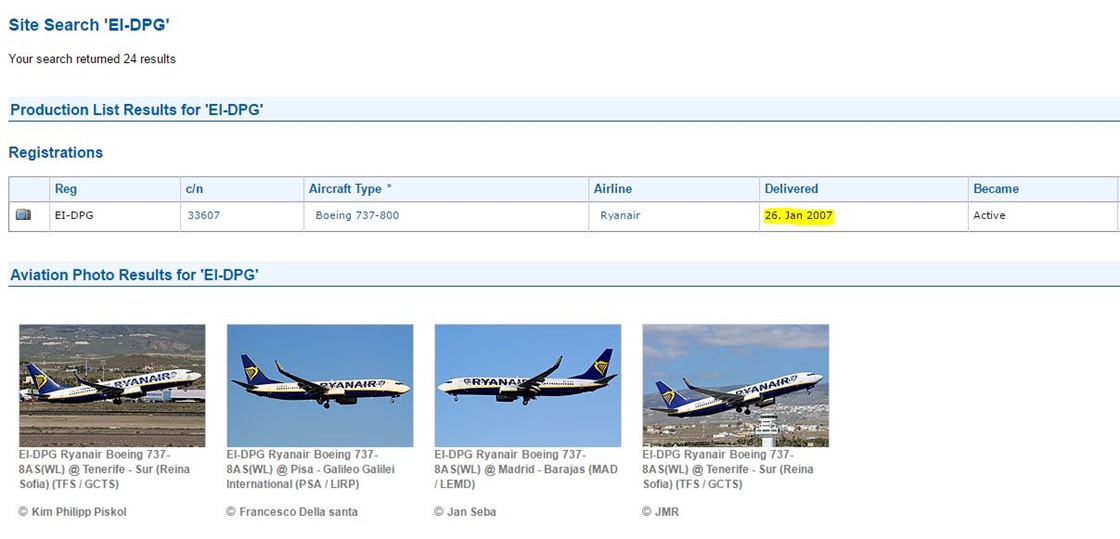 6. Nākošais solis, ir apskatīties reģistrāciju Planespotters lidmašīnu reģistrā, lai uzzināt kad tā ir izlaista un piegādāta.