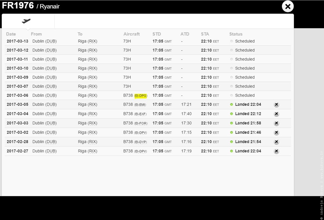 Tagad mums ir zināma lidmašīnas reģistrācija. Konkrēti 6. Martā, Rīgā no Dublinas jau ir ceļā lidmašīna ar reģistrāciju EI-DPG, un tieši ar to mēs lidosim uz zaļo salu.