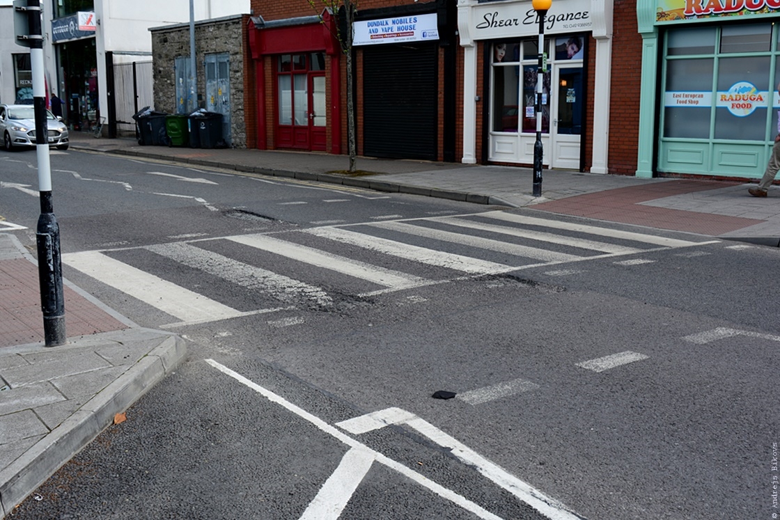 Līdz ar to, gājējiem Īrijā ir paradīze. Pilnīgi visas gājēju pārejas aprīkotas ne tikai ar gaismas signāliem vai luksoforiem, bet arī tiek nolīmeņoti.
