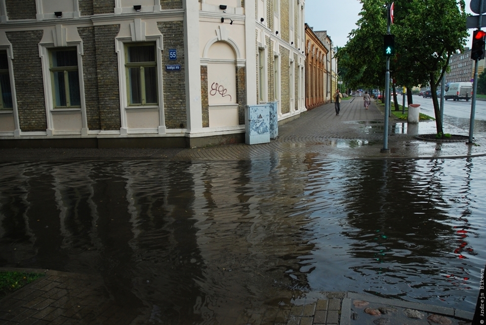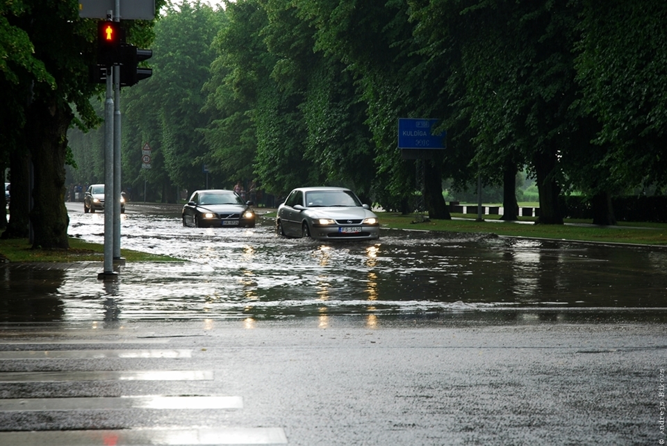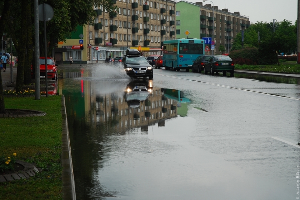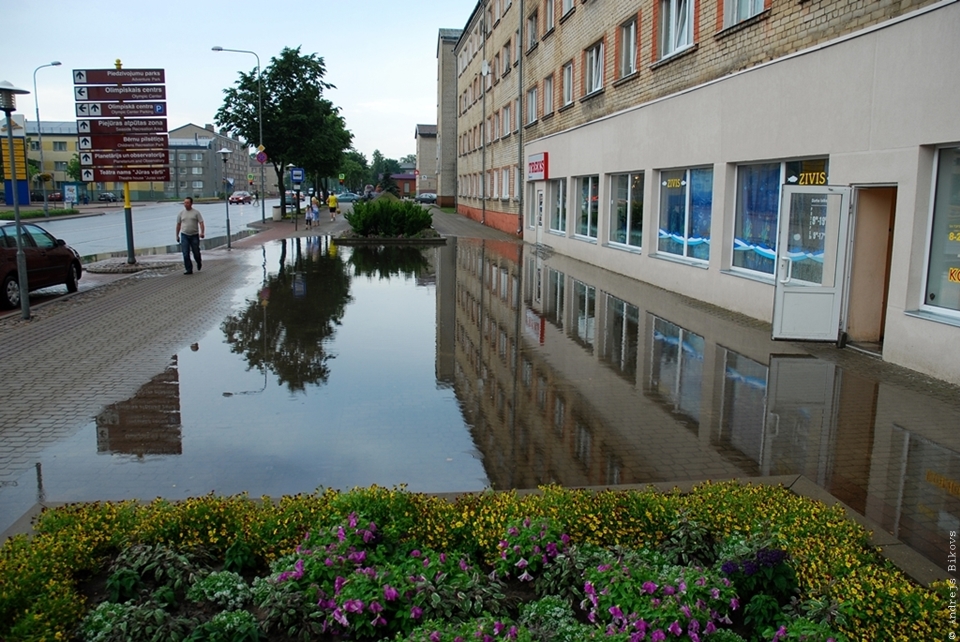 Šodien 7. Jūlija, Ventspilī, nepilnas stundas laikā, izkrīta pusotra mēneša nokrišņu norma, applūdīnot daudzas ielas un ietves.