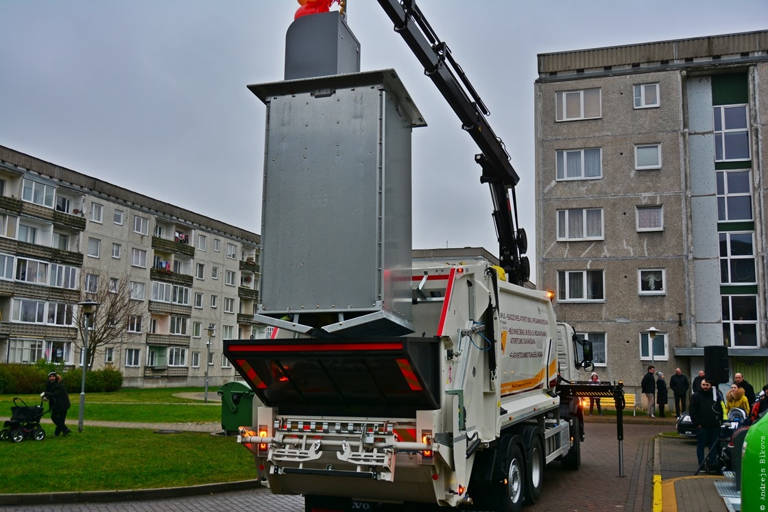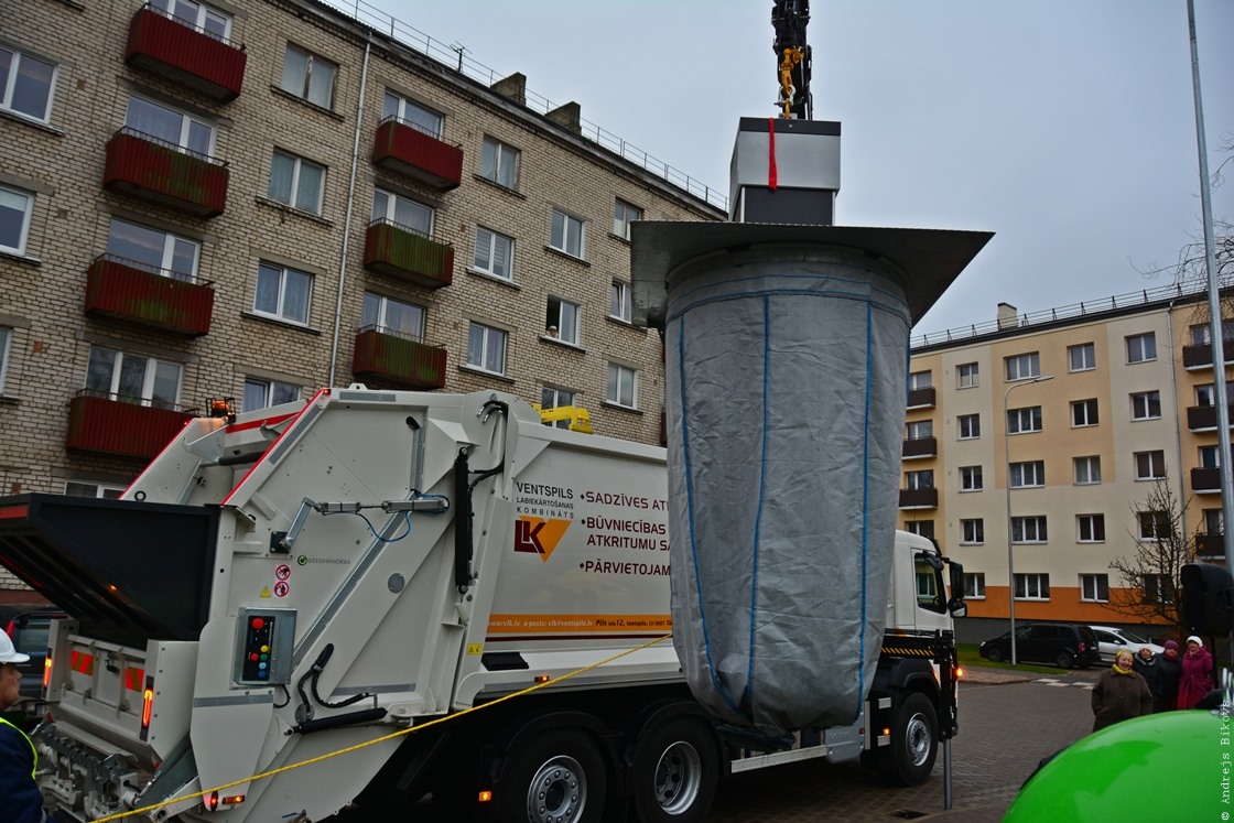 Šodien Jūras ielas 3A un Aleksandra ielas 9A iekšpagalmos Ventspils Pašvaldības SIA “Ventspils labiekārtošanas kombināts” prezentēja pirmos pazemes atkritumu konteinerus pilsētā. Protams, es nevarēju palaist garām tādu notikumu.