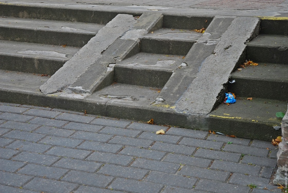 Cik es sevi atceros, problēma šajā vietā bija kopš deviņdesmito gadu beigām. Bet tad man bija citas intereses, un es, kā jau visi citi, nemaz nepievērsu uzmanību. Līdz vienā no atvaļinājumiem, pastaigājoties pa pilsētu, nācās izsaukt ātro palīdzību tūristei, kura “veiksmīgi” izmežģīja kāju. Normālas pastaigas vietā viņai nācies nodarboties ar negaidītu, neplānotu “klinšu kāpšanu” pilsētas centrā.