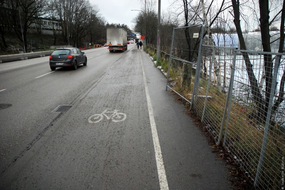 Nav brīnums, ka gājējiem ir atvēlēts knapi metrs, pārējo atstājot velosipēdistiem. Bet nu neviens nesūdzas, un visi apmierināti.