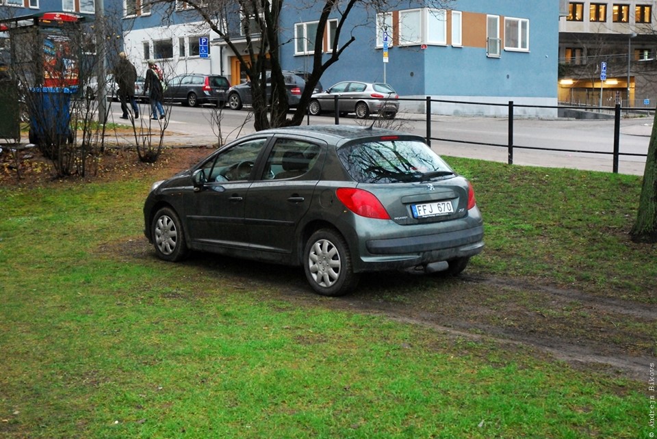 Parasti, kad mašīnas atstāj zālienā, tad tie mudaki, ar auto riteņiem izvazā dubļus pa visu pilsētu. Zviedriem noteikti ir zināms noslēpums, jo pat auto pie viņiem atļauts noparkot zālienā. Bet uz ielām, dubļi nebija vispār.