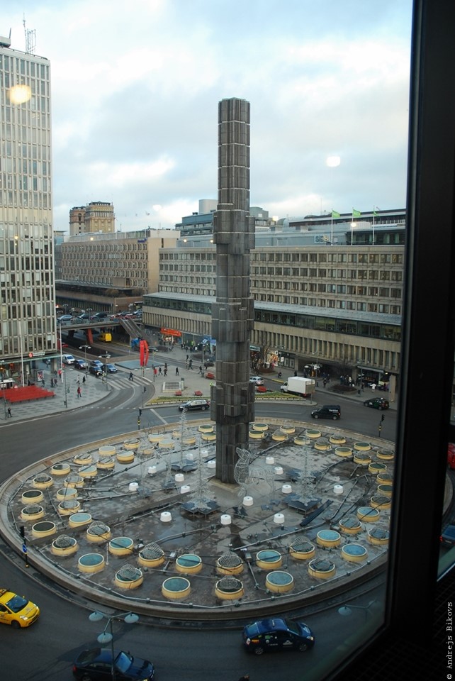 Stabi, dekorācijas, pieminekļi. Piemēram, šī slavena, centrāla konstrukcija „The monument of Sergels Torg” pie centrālstacijas.